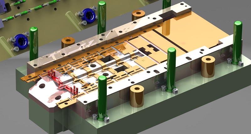 Progressive dies are used in higher-volume production and are designed to operate at high rates of speed. Stampo manufactures high-quality, reliable and cost-effective progressive dies for general appliances. We have the expertise and technology to design, test and manufacture progressive tools that meet a broad range of manufacturing challenges.